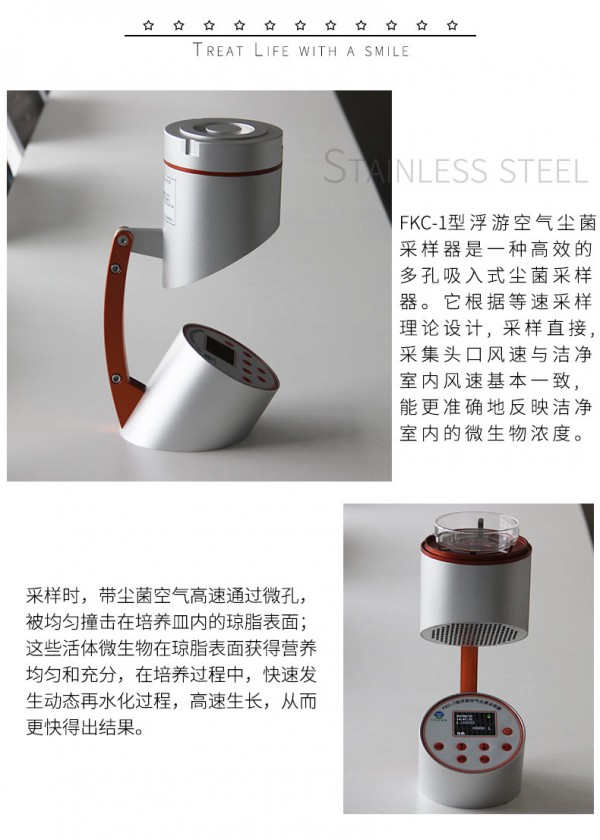 1.采样头为无数微孔,使微生物均匀分布在琼脂表面,减少了尘菌重 叠,降低 了微生物计数误差。