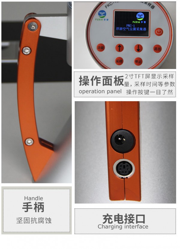 FKC-1型浮游空气尘菌采样器是一种的多孔吸入式尘菌采样器。采样时,带尘菌空气高速通过微孔,被均匀撞击在培养皿内的琼脂表面;这些活体微生物在琼脂表面获得营养均匀和充分,在培养过程中,快速发生动态再水化过程,高速生长,从而快得出结果。